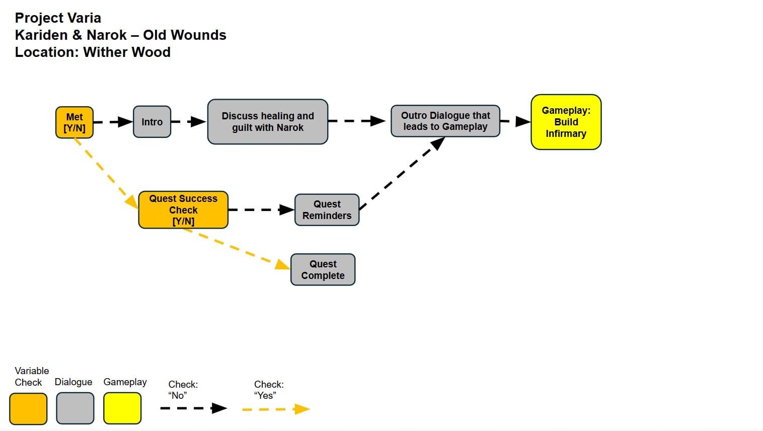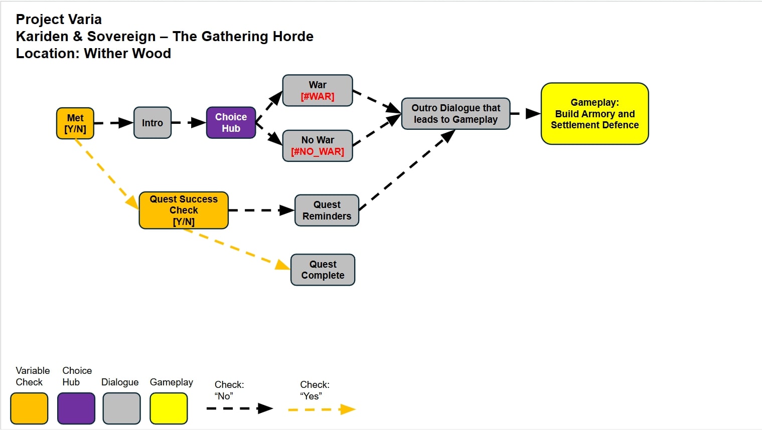 • Simplicity: Designed dialogue without quest check or variable hubs, given its cutscene context