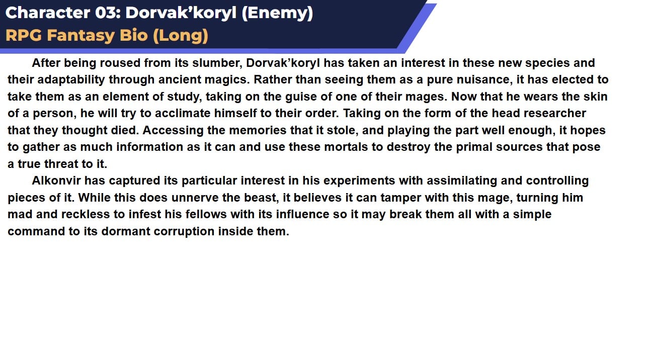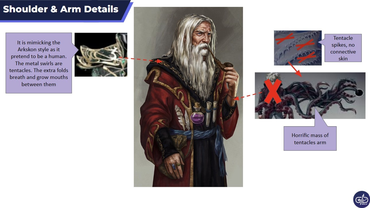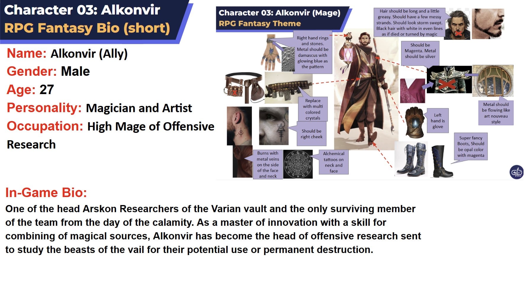 2. Crafting his personality and motives within the theme of academic curiosity of his foes and designing his magic to be consumptive to reflect the Arskon Covenant