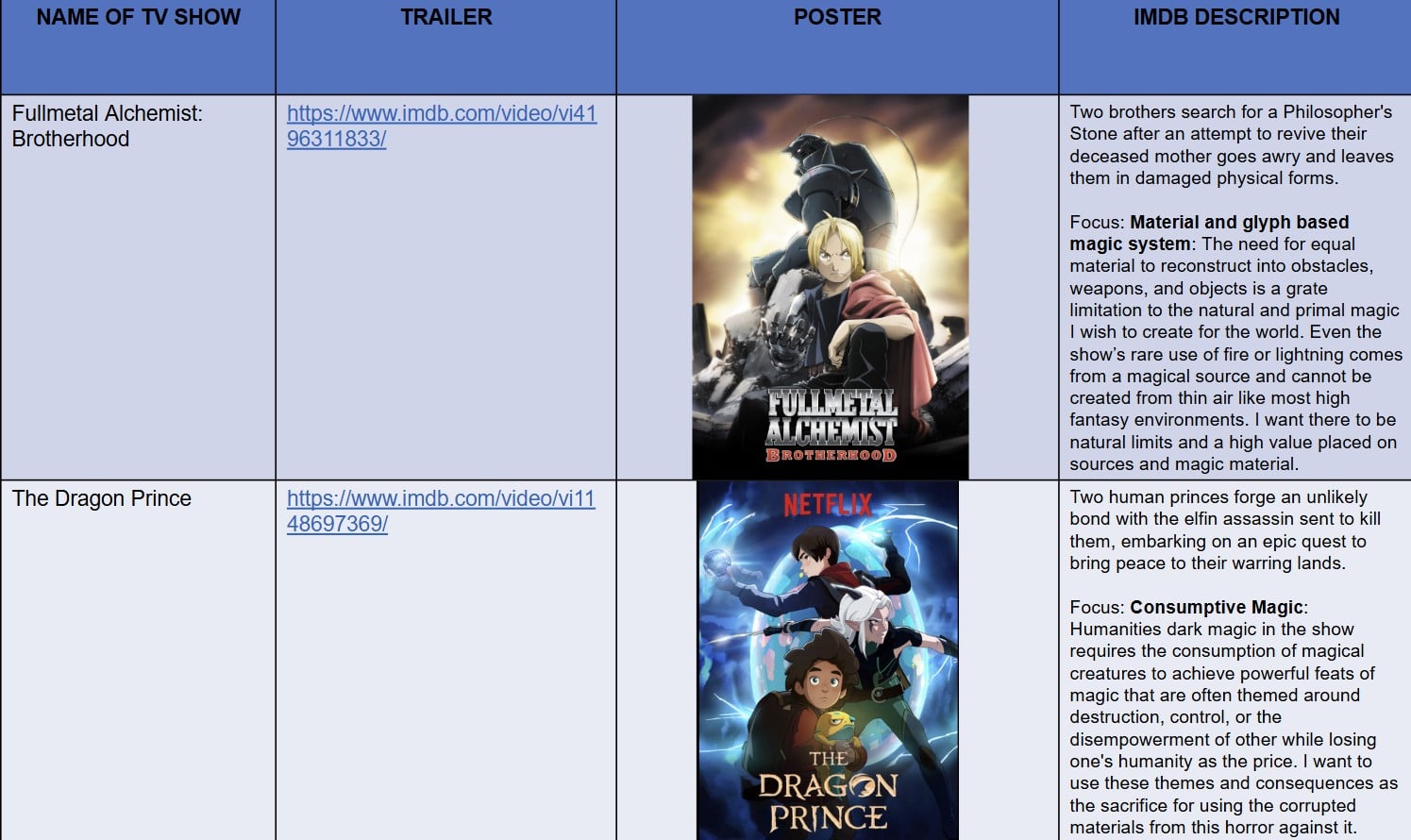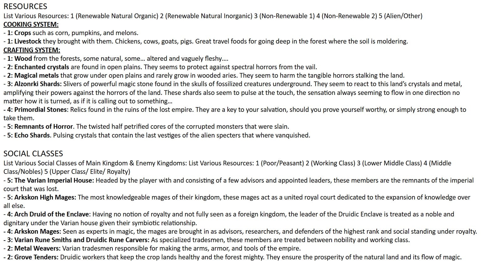 1. Outlined the zoology, geography, species, magic, level of technology, social classes, and resources available in the world