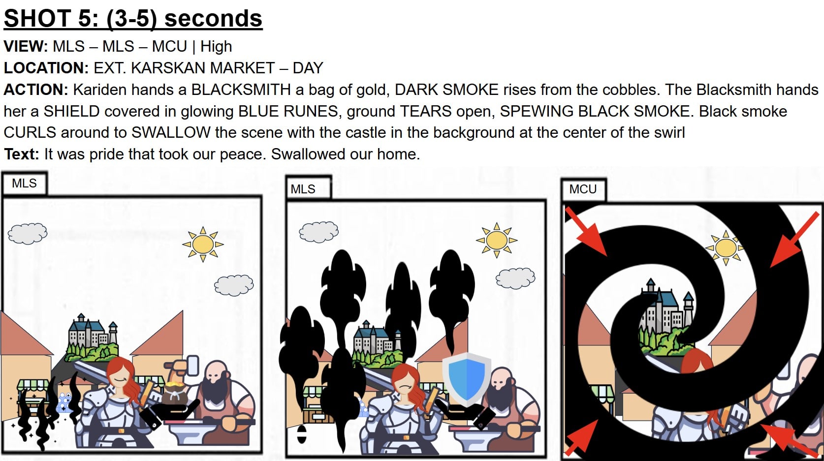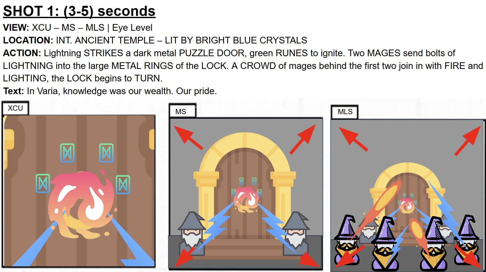 Wrote a storyboard script for the opening sequence of the game, and designed a preliminary storyboard to collaborate with the art and marketing teams, and get internal approvals: