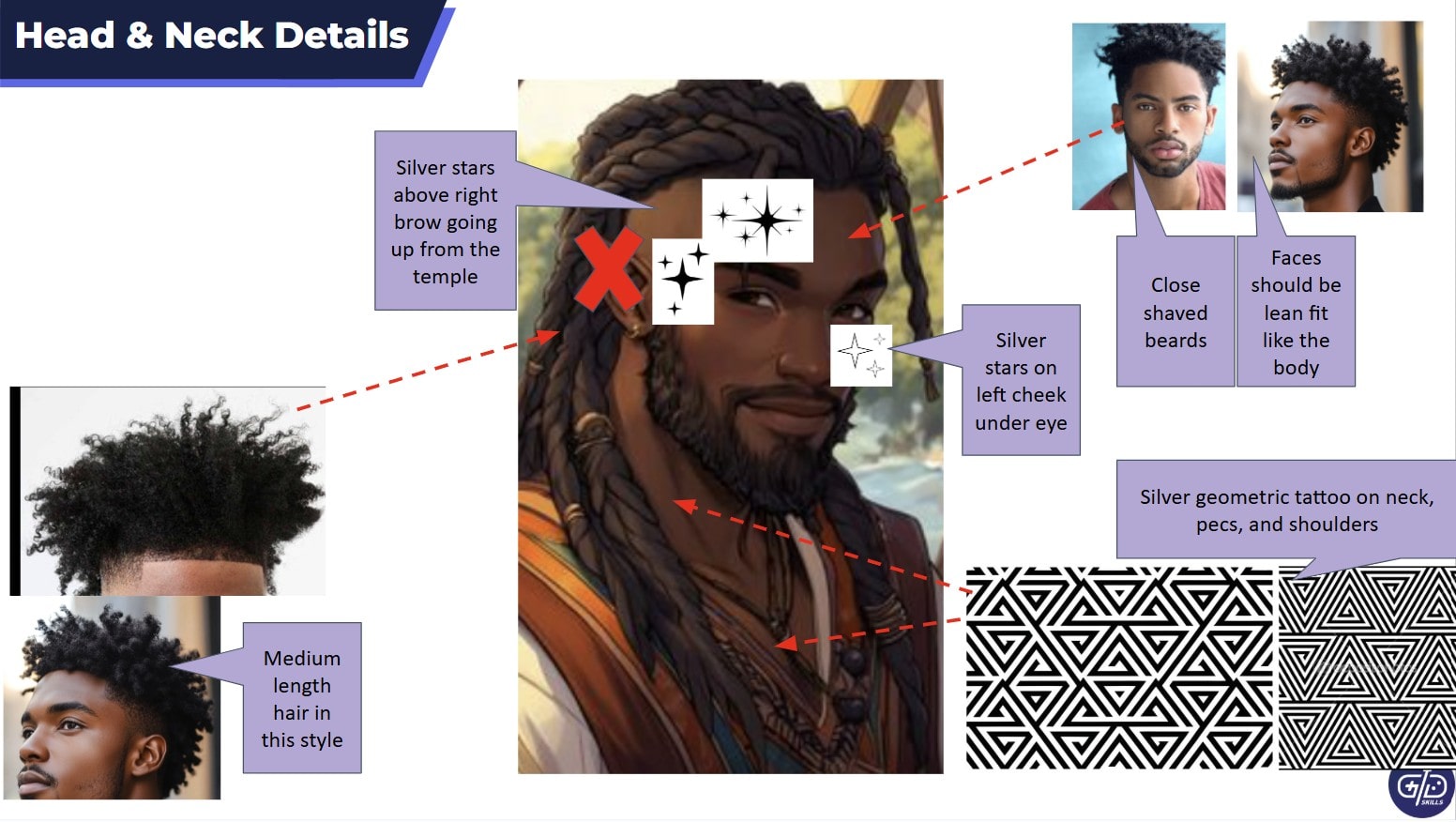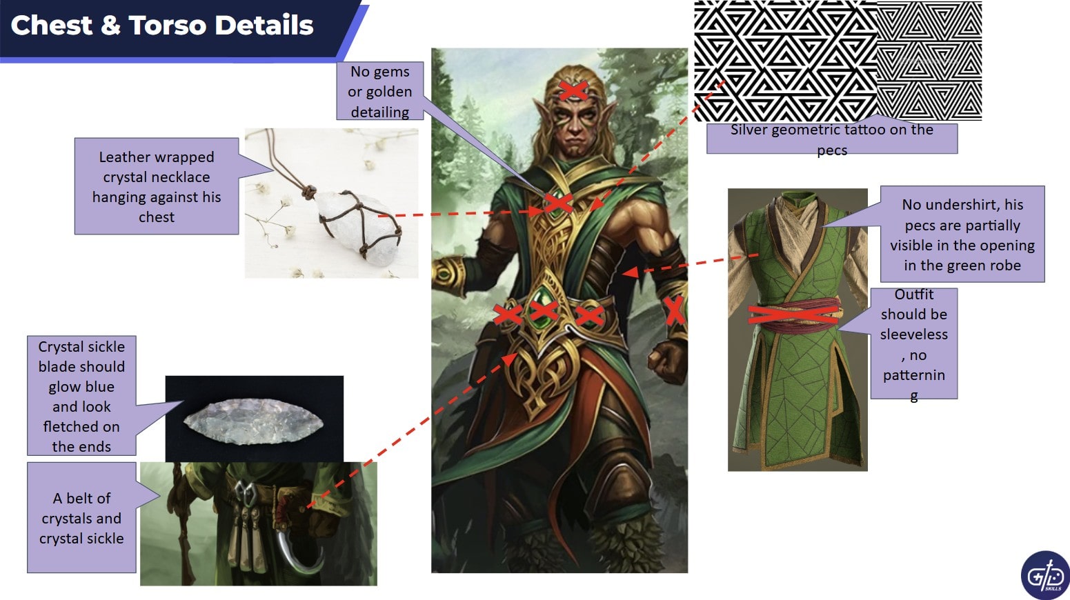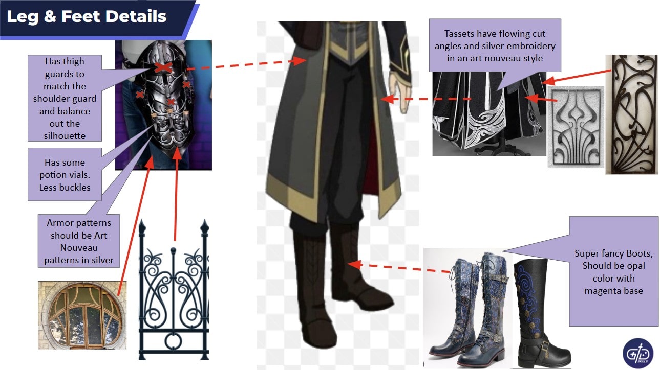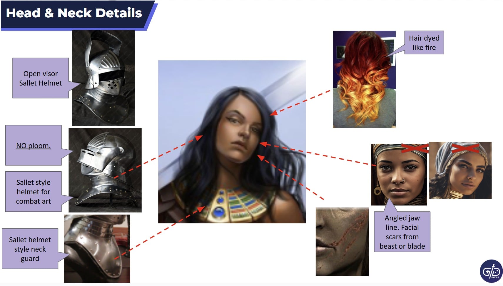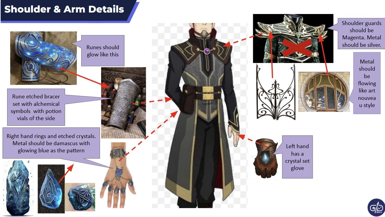 1. Provide a key reference image with notes and additional information to further refine design intent and supply the art team with clear materials to inspire their work