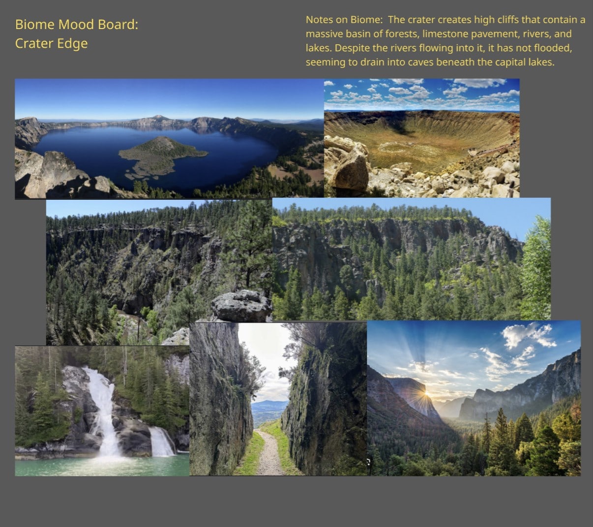 3. Gathered crater images to show real-world limits and paired them with references of cliffs to push the fantasy and grand scale of the environment