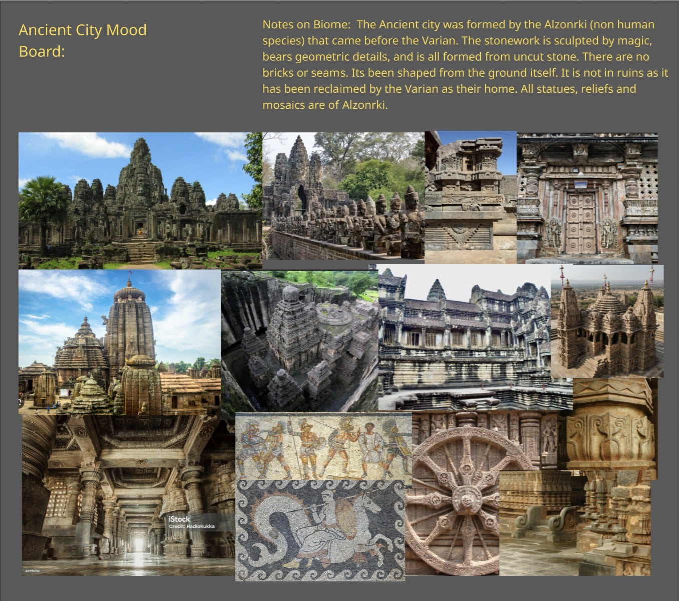 Created mood boards for special game locations for collaboration with the environment artists to enhance the ancient and grand theming of late game locations: