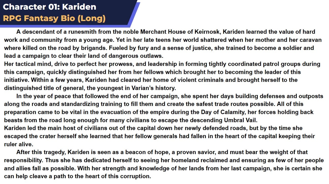 1. Giving him a calm personality in battle that clashes with Kariden’s vengeful nature