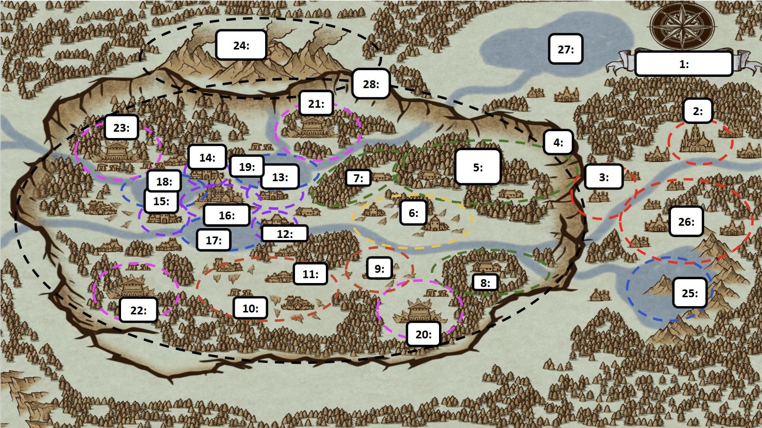 4. Wrote a location key to indicate location names and their faction status at the start of the game